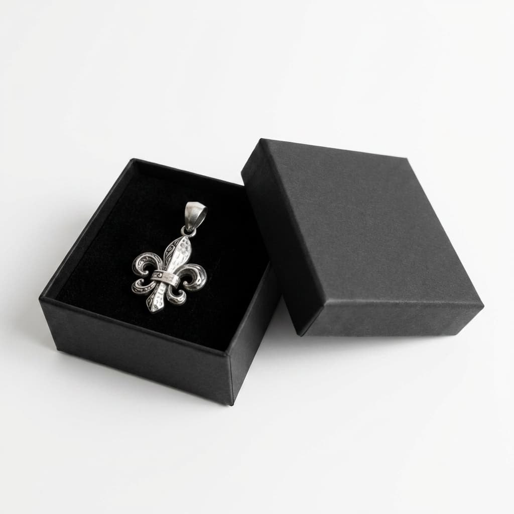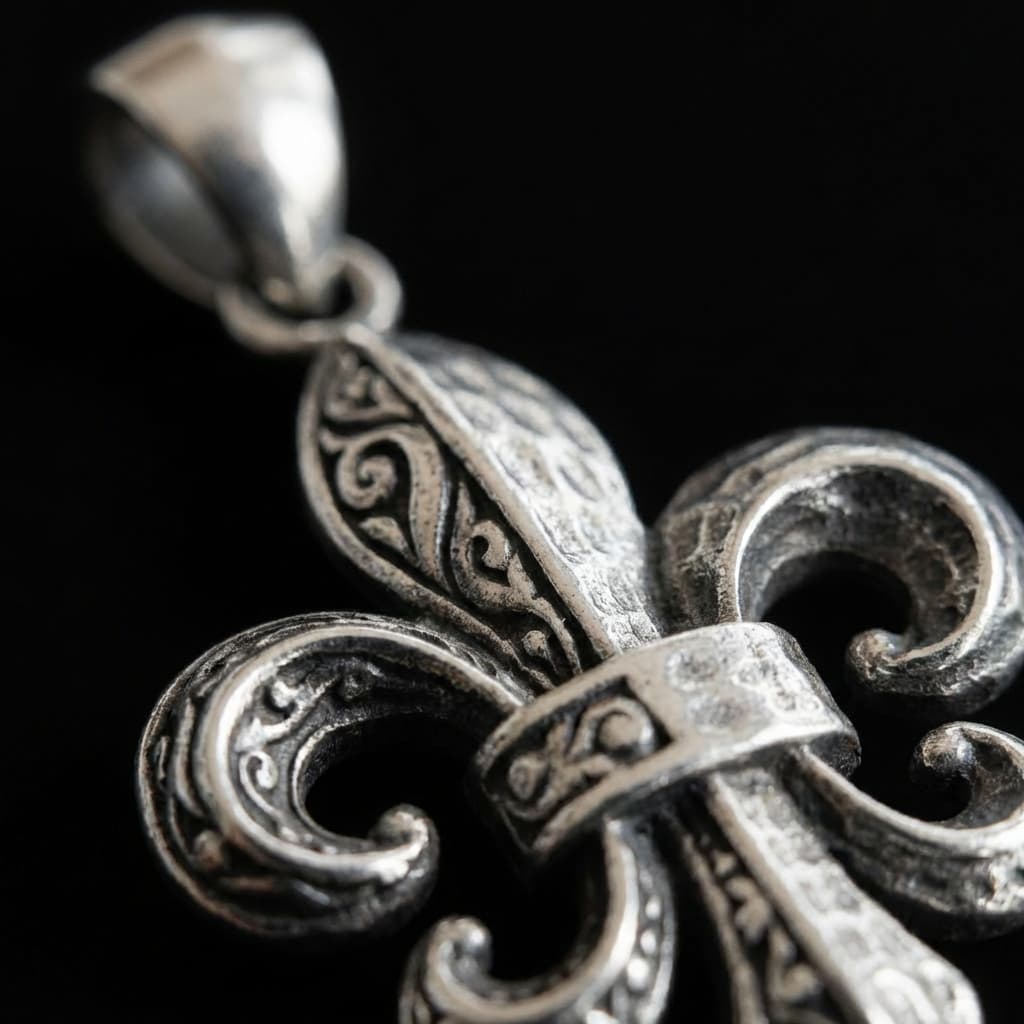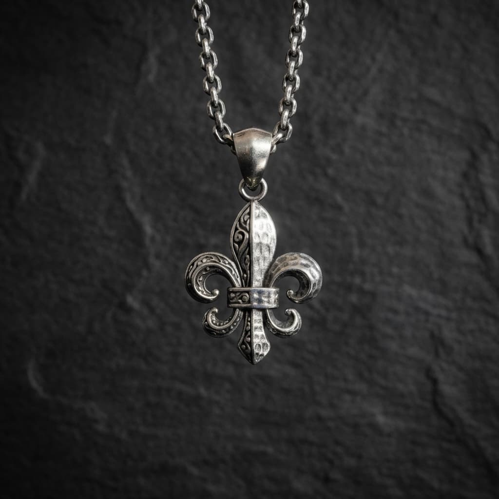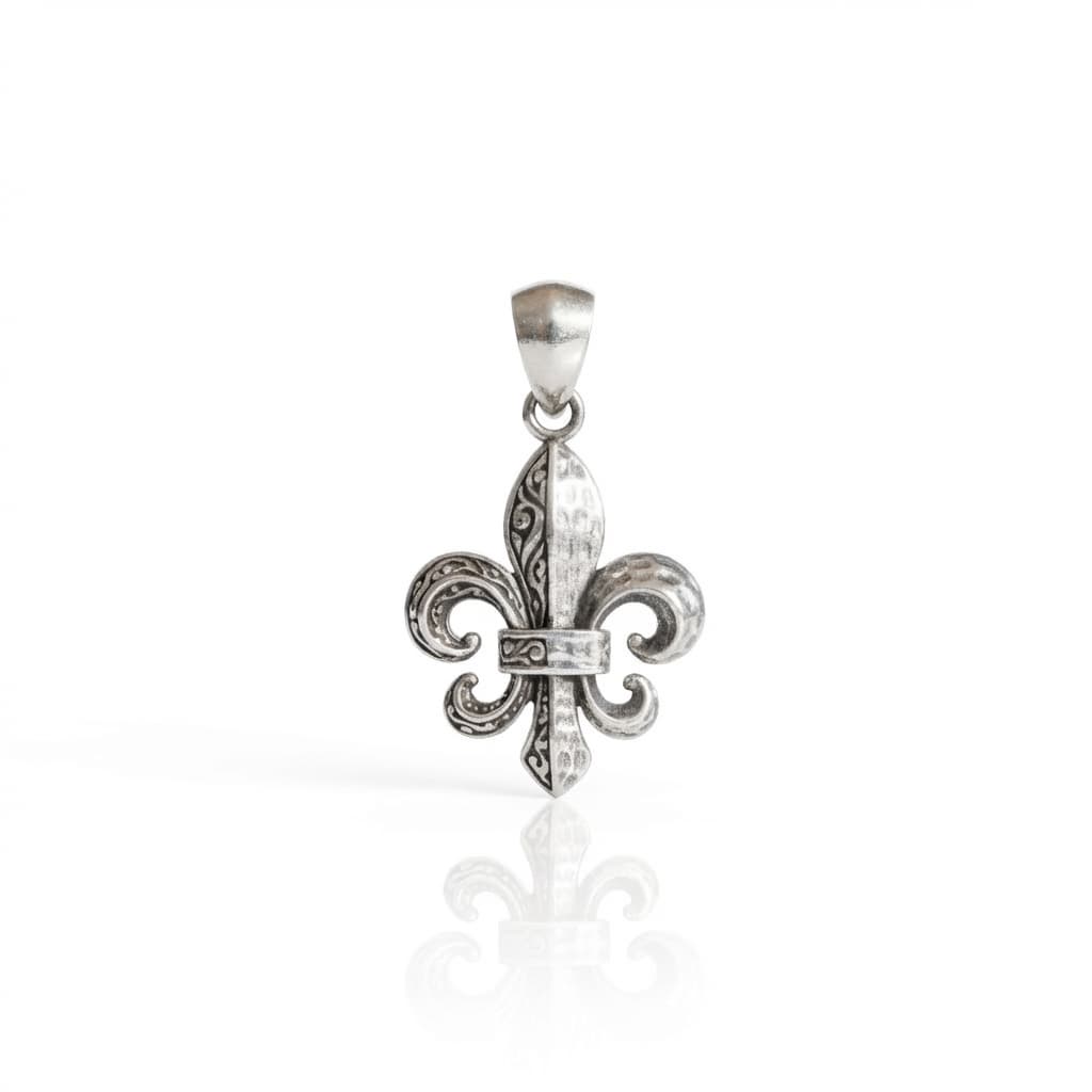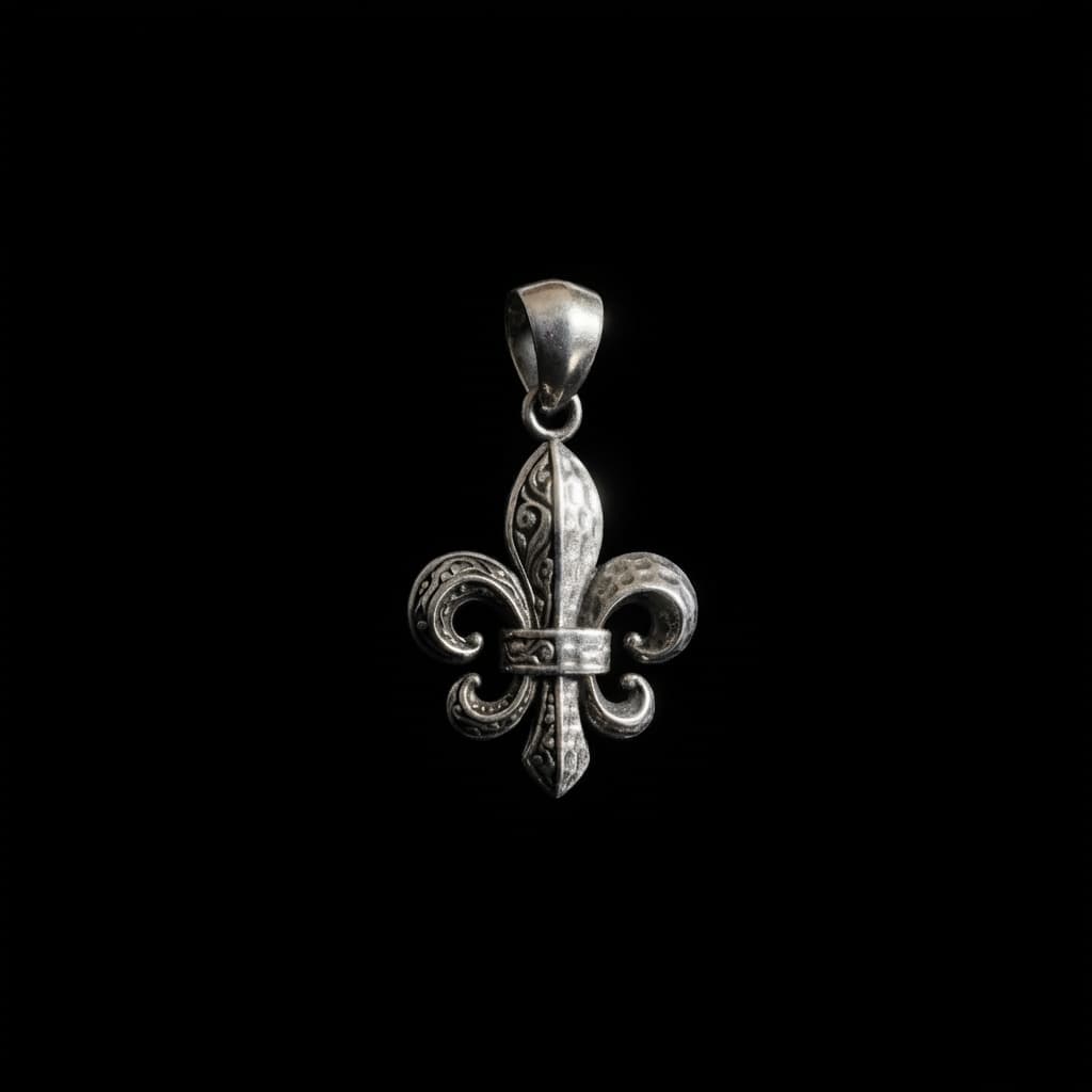 Valmistatud täishõbedast 925. Fleur-de-lis – klassikaline heraldikasümbol – on kaetud peente ornamentaalsete mustritega, mis annavad ripatsile elegantse ja ajaloolise ilme.