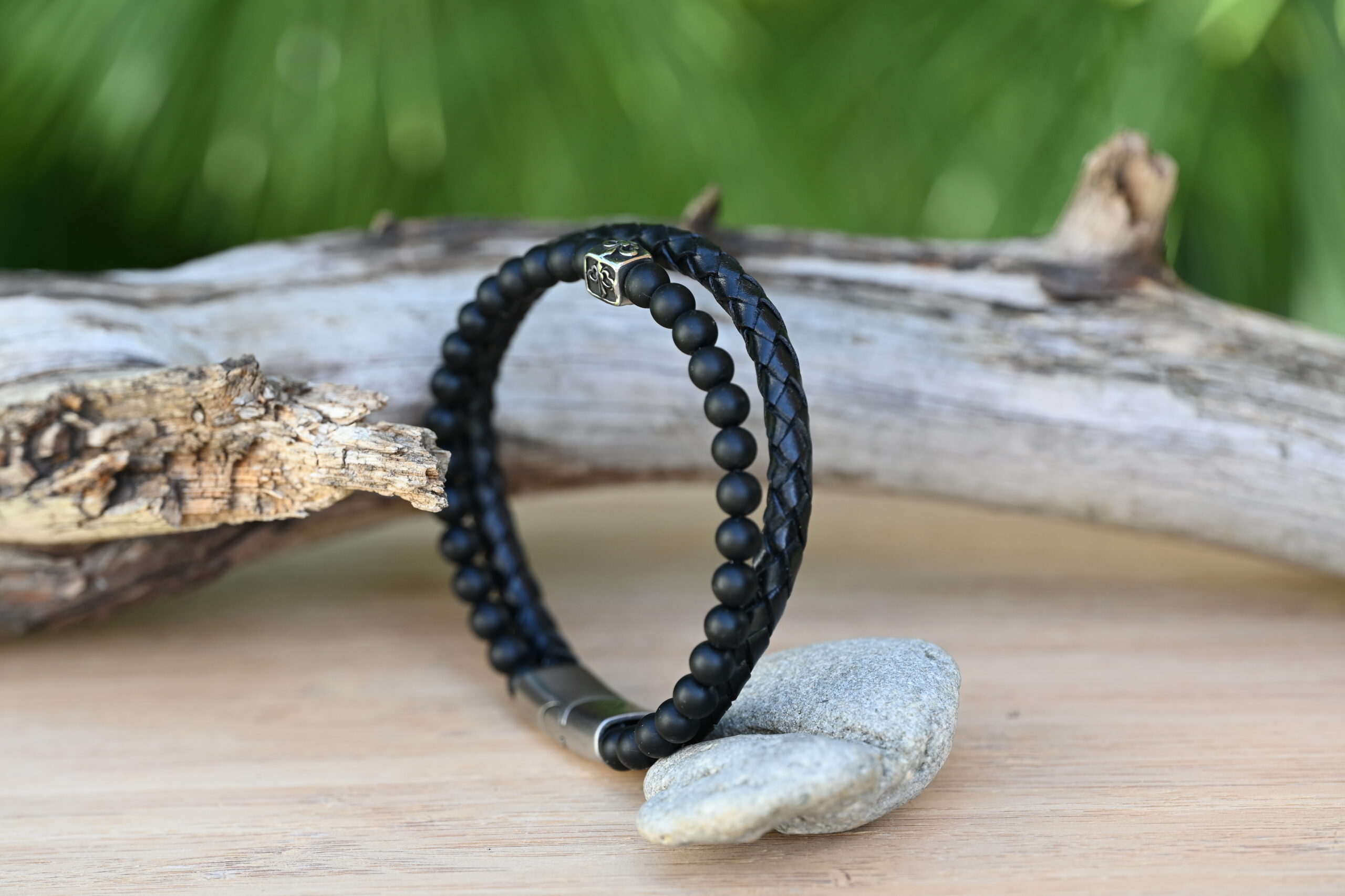 See meeste käevõru on valmistatud ehtsast nahast ja vastupidavast roostevabast terasest. See on roostekindel, niiskuskindel, higikindel ja hüpoallergeenne. Vastupidav igapäevaseks kandmiseks, ei tuhmu ega jäta nahale rohelist värvi. Mugav kanda ja sobib ka tundlikule nahale.