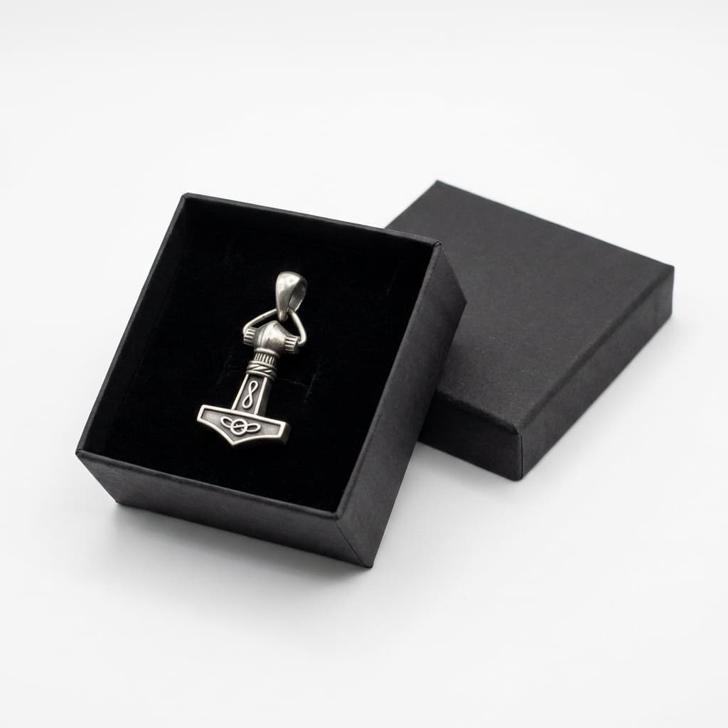 Valmistatud täishõbedast 925. Mjölnir detailse käepidemega – varrel lõpmatussümbol ja haamri peal põimunud sõlmemuster.